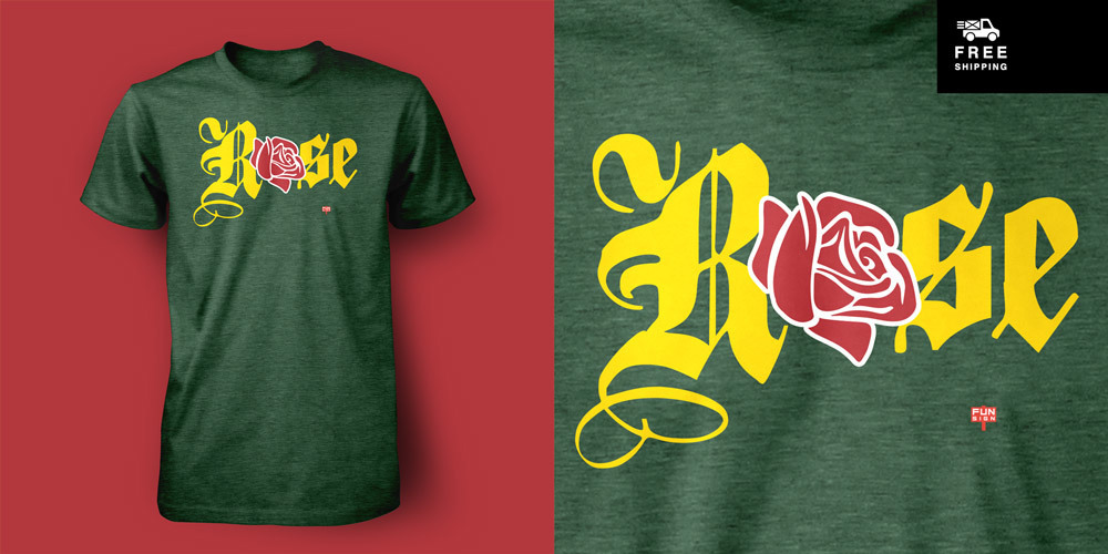 The ROSE t-shirt. A perfectly soft poly-cotton blend, available in forest green heather. The traditional / unisex cut looks great on guys and girls. Made with love (and just a hint of pride) by Fun Sign Co. and delivered to your door for $24. (XXL $25.)